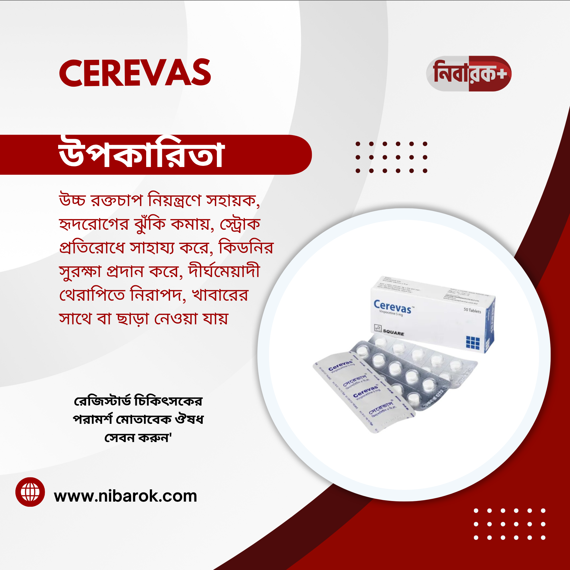 Keywords: Cerevas 5, Vinpocetine tablets, cerebral vasodilator, brain oxygenator, memory loss treatment, cognitive enhancement, neurological health, Alzheimer’s treatment, stroke recovery, Parkinson’s dementia, head injury therapy, brain blood flow, cerebrovascular disorders, Square Pharmaceuticals, dementia treatment, antioxidant tablets, cerebral circulation, cerebral insufficiency, nootropic tablets, cognitive booster.