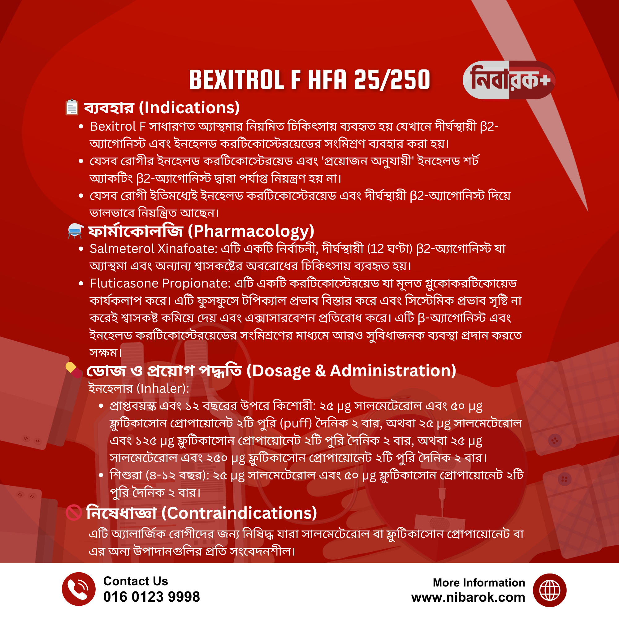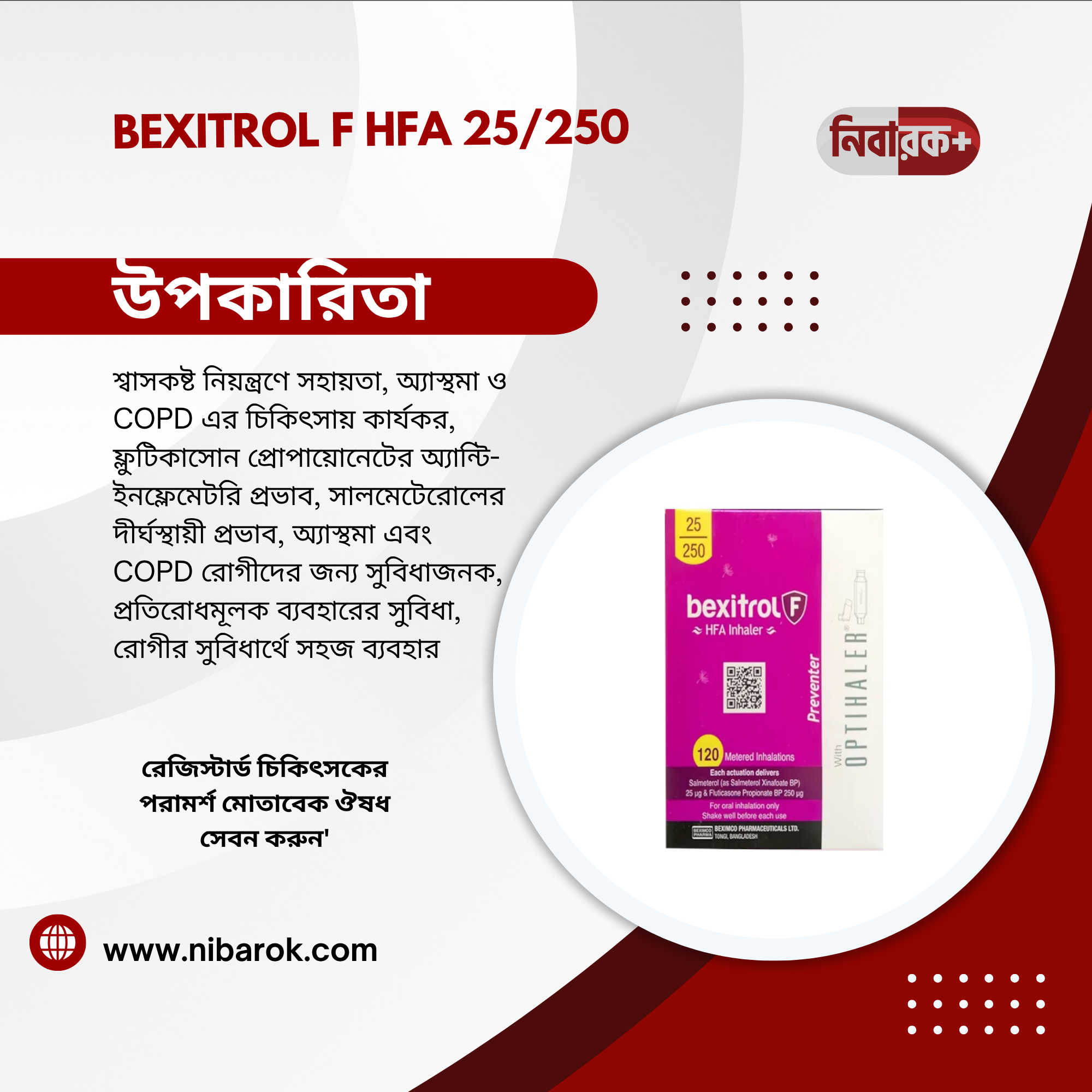 Bexitrol F HFA 25/250 is a combo inhaler for regular asthma and COPD care, easing breathing and reducing inflammation with reliable performance.