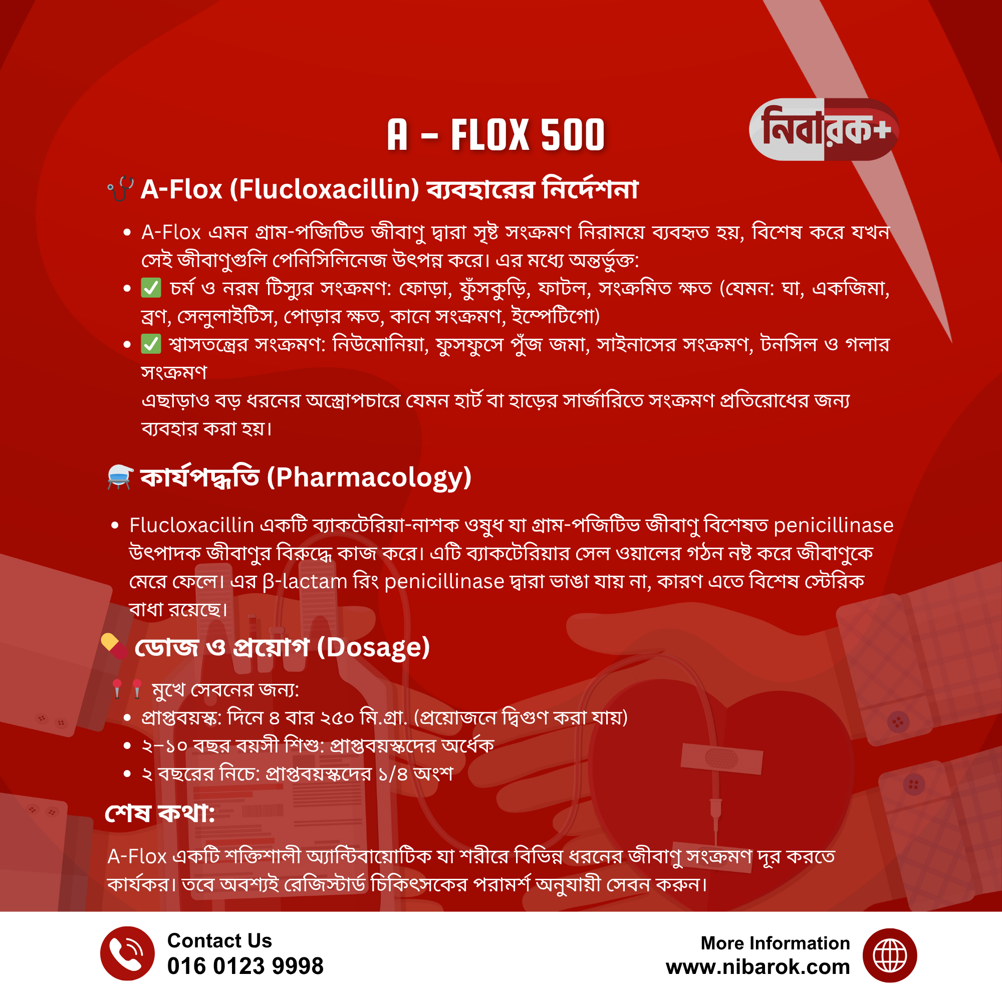 Take 1 tablet of a flox 500, twice a day after meals. Consistency is key. Take it regularly for at least 8 weeks to experience real, lasting results. And always follow your doctor’s advice if you’re unsure.