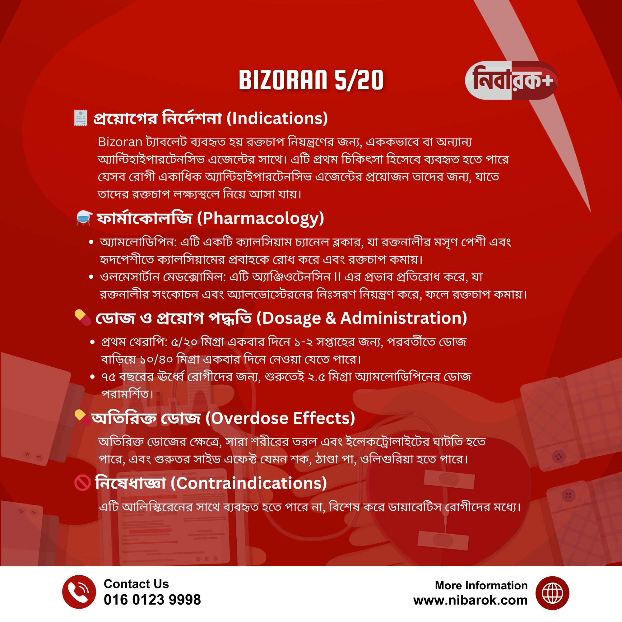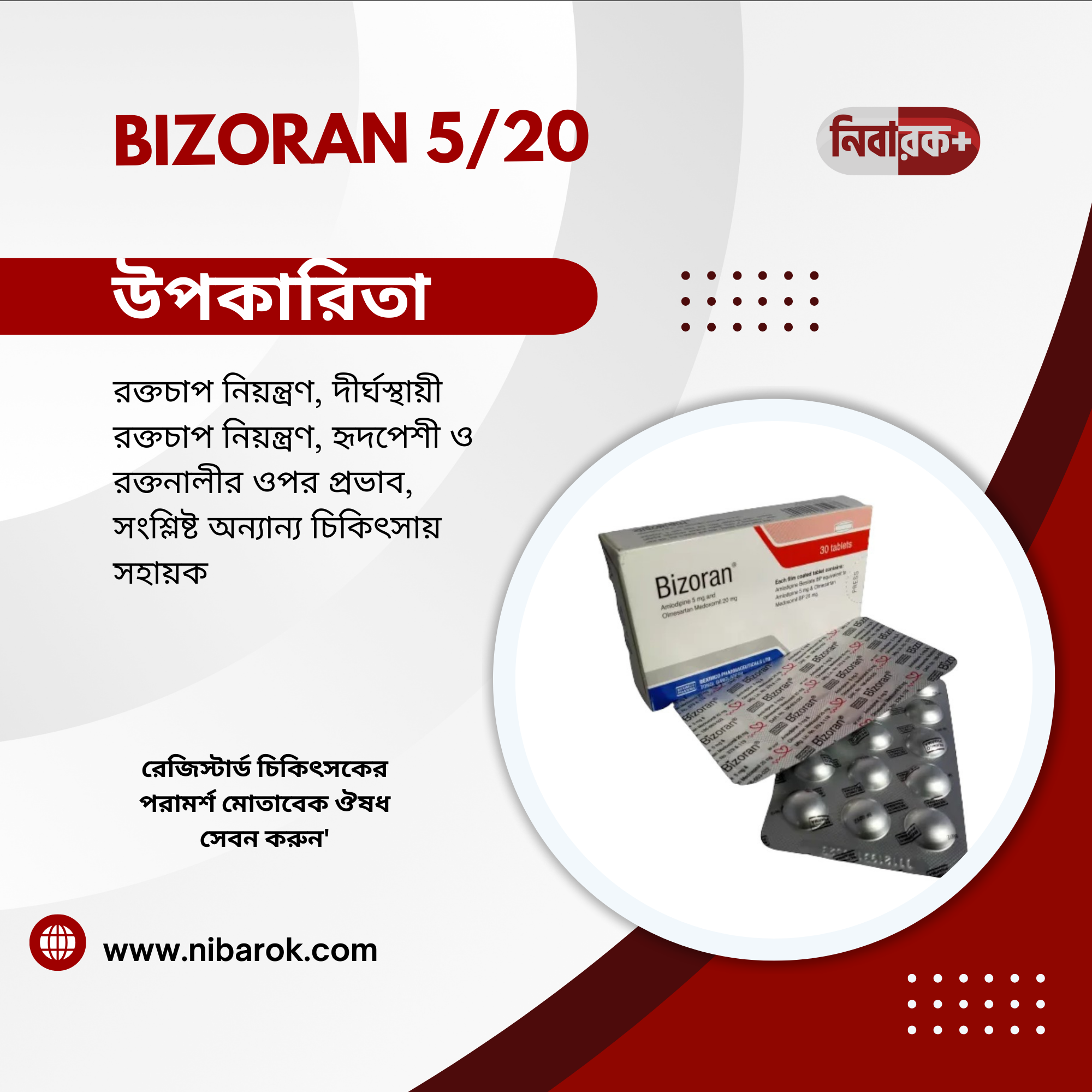 Bizoran 5/20 is indicated for treating hypertension, either alone or in combination with other antihypertensive agents. It is suitable for patients who require multiple drugs to achieve optimal blood pressure control.