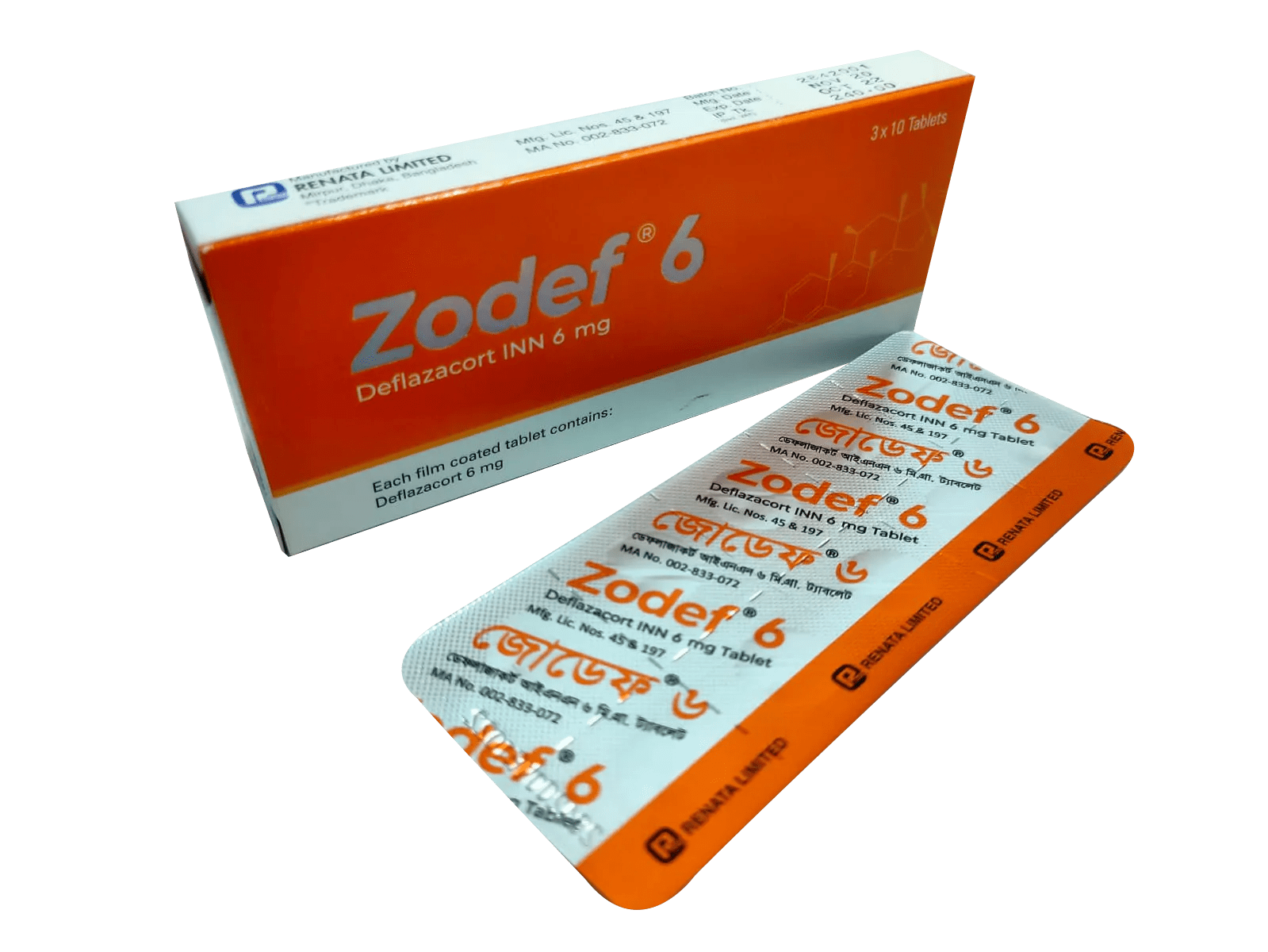 Keywords: Zodef 6, Deflazacort, anti-inflammatory, corticosteroid, asthma treatment, rheumatoid arthritis, autoimmune diseases, inflammatory disorders, Renata Limited, glucocorticoids, allergic conditions, dosage, side effects, pregnancy safety, nephrotic syndrome, immune suppression, juvenile arthritis, chronic diseases, corticosteroid therapy, asthma management, Zodef uses
