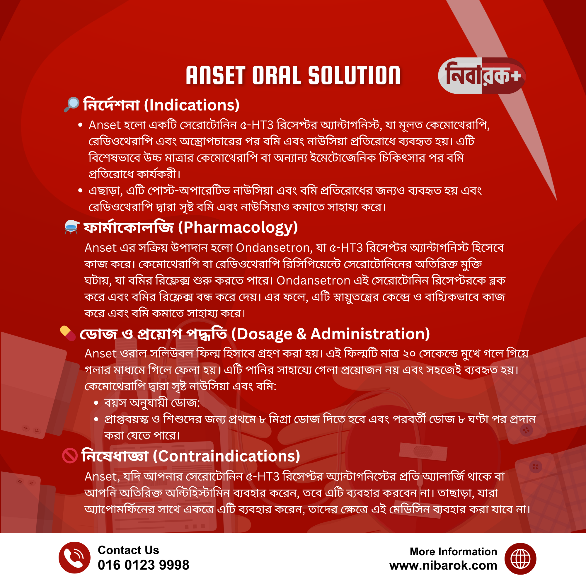 Versatile Use: From chemotherapy-induced nausea to postoperative discomfort, ANSET SOLUTION is here to make a difference in your treatment journey.